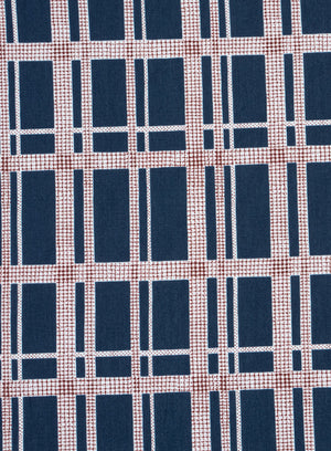 Bauhaus Show is a fun conversational design that takes inspiration from the costumes of the Bauhaus Ballet. Take a closer look to spot the geometric men and women hidden within the print.